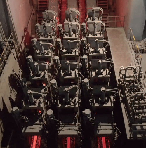 采用全保護(hù)、穩(wěn)拉速澆注,并配備結(jié)晶器自動(dòng)液面控制系統(tǒng)、電磁攪拌系統(tǒng)、自動(dòng)配水系統(tǒng)、大包下渣檢測(cè)系統(tǒng)、熱坯溫度檢測(cè)系統(tǒng)、自動(dòng)切割系統(tǒng)及翻鋼冷床,能確保連鑄鋼坯的外形尺寸、表面質(zhì)量及內(nèi)部質(zhì)量得到有效控制并滿(mǎn)足要求。